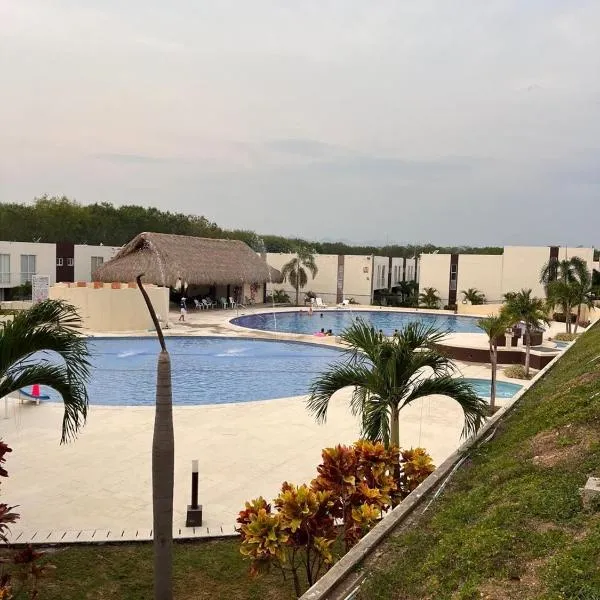 Casa Condominio Malaga Bahia Solero Ricaurte - Girardot位于吉拉尔多特,提供带免费WiFi的河景客房,配备季节性室外泳池、花园和共用休息室。这家住宿距离Piscilago乐园有20公里,配备露台和免费私人停车位。 这家度假屋提供阳台,享有池景,配有3间卧室、起居室、平板电视、带冰箱和烤箱的设施齐全的厨房以及2间带淋浴设施的浴室。