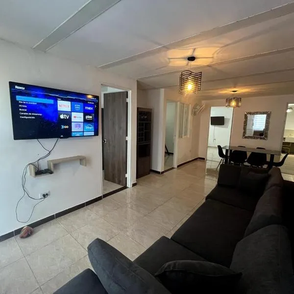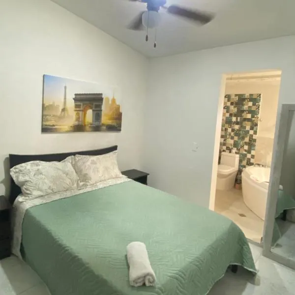 Hospedaje casa campestre坐落于Roldanillo。这家自助式度假屋拥有私人泳池、花园、烧烤设施、免费WiFi和免费私人停车位。 这家度假屋享有花园景,配备阳台,配有3间卧室、起居室、平板电视、设施齐全的厨房以及3间带浴缸或淋浴设施的浴室。这家度假屋也配有3间浴室。 住宿内部配备室外泳池。客人可以在这家度假屋附近体验徒步。 伊甸园国际机场距离住宿有66公里。