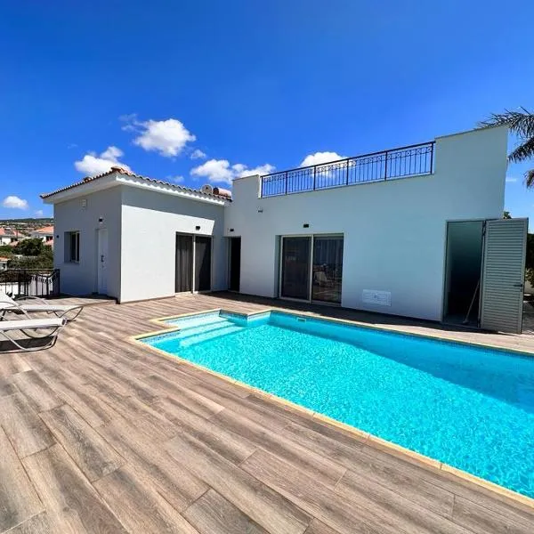 Sunset Paradise Villa Stroumpi坐落于Stroumbi,距离敏蒂斯山高尔夫俱乐部有不到9.4公里,距离马基迪奥剧院有16公里,提供免费WiFi、空调和共用休息室。这家自助式度假屋拥有私人泳池、花园和免费私人停车位。 这家度假屋享有山景,配备露台,配有3间卧室、起居室、平板电视、设施齐全的厨房以及2间带热水浴池的浴室。这家度假屋也配备2间浴室。