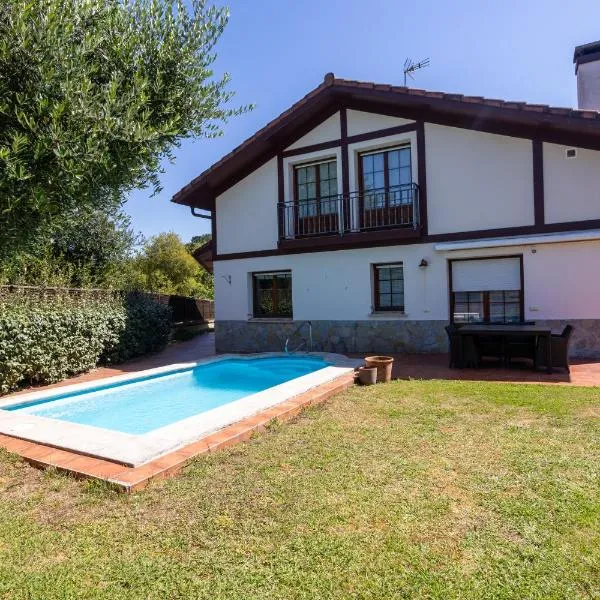 Ozollo Bekoa - Casa con piscina en el corazón de Urdaibai.位于戈特赫斯阿特亚加,提供带免费WiFi的池景客房,配有季节性室外泳池、健身中心和花园。这家度假屋配备免费私人停车位。客人可以在周边地区体验徒步、骑行和飞镖等活动。 这家度假屋享有山景,提供露台,配有4间卧室、起居室、有线频道平板电视、设施齐全的厨房以及3间带淋浴设施和浴缸的浴室。