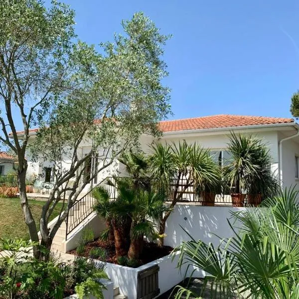 Villa Julia - Villa contemporaine avec piscine位于安格雷,提供带免费WiFi的花园景客房,配备户外游泳池、露台和娱乐场所。这家自助式别墅配有私人泳池、花园和免费私人停车位。 这家空调别墅配有4间卧室、起居室、带冰箱和电热水壶的设施齐全的厨房以及3间带淋浴设施和免费洗浴用品的浴室。3间浴室配有浴缸,也提供吹风机,提供毛巾和床上用品。