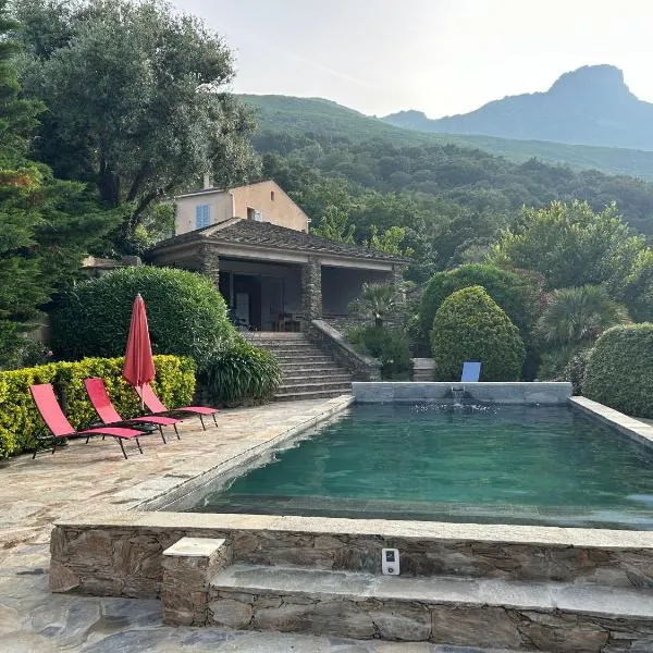 Petite villa cocooning位于Sisco,配有户外游泳池和露台,距离巴斯提雅港有20公里,距离富里亚尼火车站有27公里。这家自助式度假屋拥有私人泳池、花园和免费私人停车位。 这家空调度假屋配有1间卧室、起居室、带冰箱和咖啡机的设施齐全的厨房以及1间带淋浴设施和吹风机的浴室。这家度假屋也配有休息区和1间浴室。 巴斯蒂亚机场距离住宿有39公里。