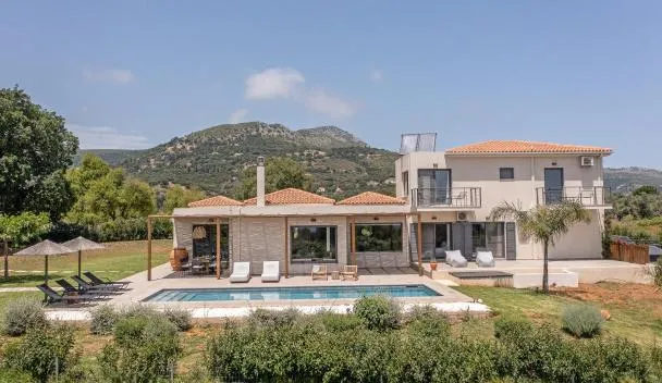 Alberi - Izla Homes享有山景,提供季节性室外泳池和阳台,距离斯卡拉海滩约有2公里。这家自助式别墅拥有私人泳池、花园和免费私人停车位。 这家别墅提供4间卧室、3间浴室、床上用品、毛巾、平板电视、用餐区、设施齐全的厨房以及海景露台。这家空调别墅还配备休息区、洗衣机以及3间带淋浴设施和浴缸的浴室。 这家别墅提供自行车租赁服务和汽车租赁服务。