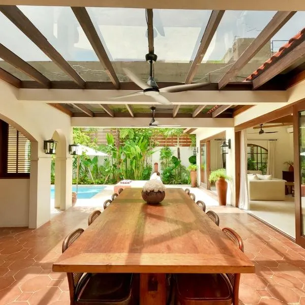 Villa Casa Goya - Lofty Pool Villa Near The Beach in Vibrant Legian位置很好,位于勒吉安,地处正中心,享有池景,提供户外游泳池和露台。这家住宿提供私人泳池、免费WiFi和免费私人停车位。 这家空调1卧室别墅提供1间浴室,配备坐浴盆、淋浴设施和吹风机。这家别墅也配有休息区、1间浴室以及带冰箱、微波炉和炉灶的设施齐全的厨房。