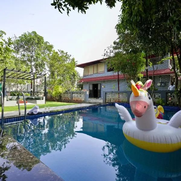 StayVista at Zen Haven with Pool, Bathtub, BBQ位于Balayaduri,配备花园和全年开放的室外泳池,享有池景。这家住宿的客人可以使用阳台、桌球台、免费私人停车位和免费WiFi。 这家空调5卧室别墅提供5间浴室,配有坐浴盆、浴缸和免费洗浴用品。这家别墅还提供平板电视以及5间带吹风机的浴室。