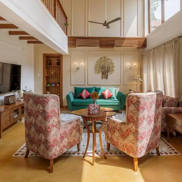 amã Stays & Trails, Cardozo House享有池景,提供户外游泳池和阳台,距离坎多林海滩(Candolim Beach)约有13分钟步行路程。这家自助式别墅配有私人泳池、花园和免费私人停车位。 这家空调别墅配有4间卧室、起居室、带冰箱和咖啡机的设施齐全的厨房以及4间带淋浴设施和免费洗浴用品的浴室。4间浴室配有浴缸,也为客人提供吹风机,提供毛巾和床上用品。