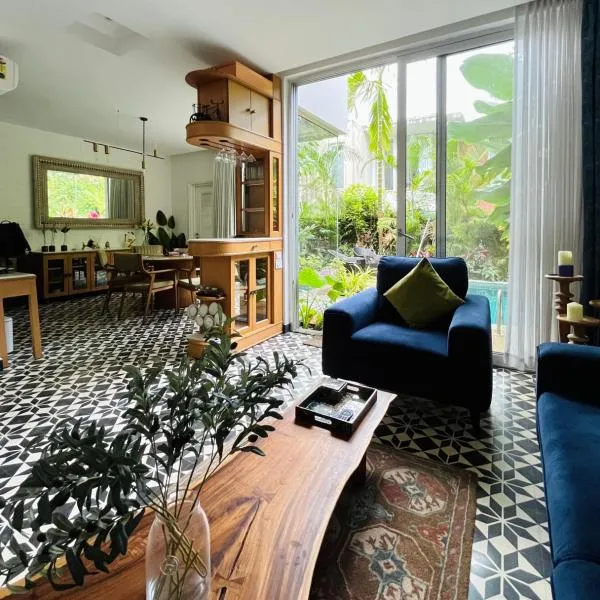 ama Stays & Trails 70 Vale, Goa坐落于果阿邦的瓦加托,配有阳台。这家自助式别墅拥有私人泳池、花园和免费私人停车位。 这家空调别墅配有4间独立卧室、起居室、带微波炉和迷你吧的设施齐全的厨房以及4间浴室。这家别墅也拥有休息区和4间浴室。 这家别墅提供带室内泳池的豪华型住宿。ama Stays & Trails 70 Vale, Goa提供汽车租赁服务。