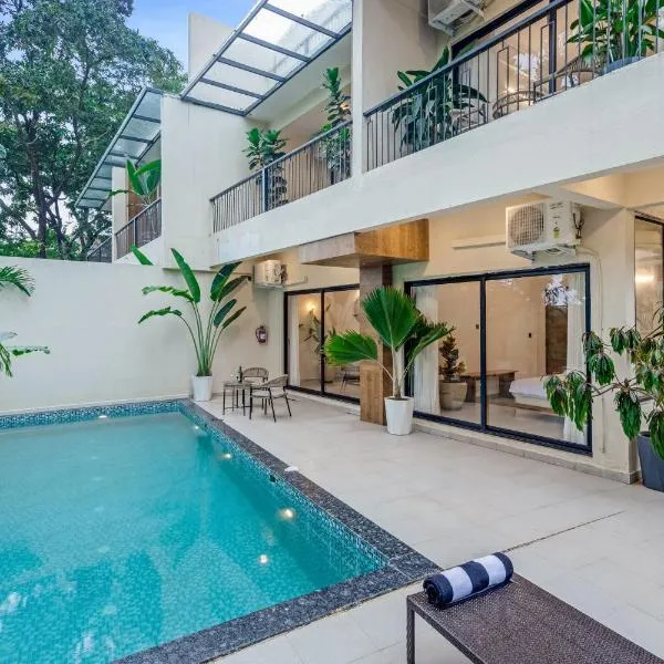 ELIVAAS 3 BHK with Pvt Pool & Spacious living Area - Mirai Villa Sukoon坐落于果阿旧城,享有池景,配有客房、私人泳池和庭院。这家住宿距离奥兹兰海滩(Ozran Beach)有1.9公里,提供户外游泳池和免费私人停车位。