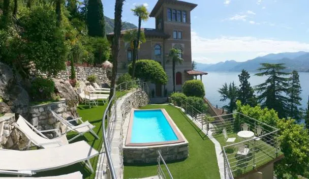 Miralago stunning view over Varenna位于佩尔莱多,提供享有山景和池景的阳台、按季节开放的室外泳池、桑拿房以及热水浴池。这家自助式别墅拥有私人泳池、花园和免费私人停车位。 这家别墅提供露台,享有市景,配有2间卧室、起居室、平板电视、设施齐全的厨房以及1间带热水浴池的浴室。1间浴室提供浴袍。