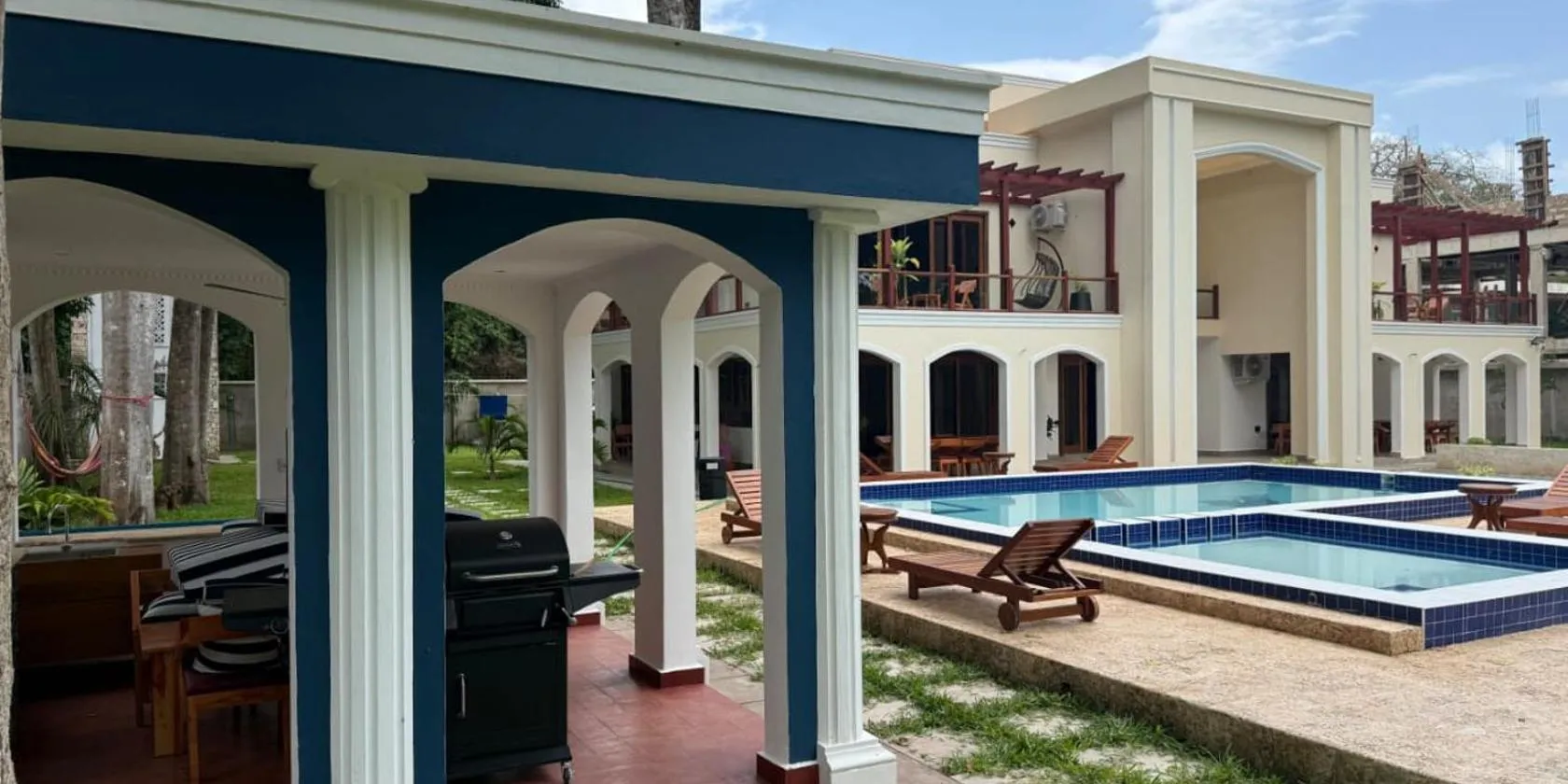Watano Beach House Diani位于迪亚尼海滩,提供全年开放的室外泳池、免费WiFi、花园和共用休息室。内部提供私人停车位。 部分房间提供海景阳台、设施齐全的厨房以及带淋浴设施的私人浴室。 这家别墅提供自行车租赁服务和汽车租赁服务。 Watano Beach House Diani距离迪亚尼海滩(Diani Beach)有几步路,距离休闲小屋高尔夫俱乐部有2.6公里。