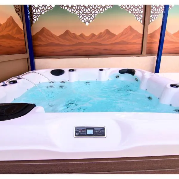 Riad Dar Fena By K&G &jacuzzi位于马拉喀什中心,享有市景,配有共用休息室、露台和餐厅。住宿提供免费WiFi,可以安排额外收费的私人停车位。 这家空调度假屋配有3间卧室、起居室、带冰箱和咖啡机的设施齐全的厨房以及2间带淋浴设施和免费洗浴用品的浴室。这家度假屋还提供平板电视以及2间带吹风机的浴室。 这家度假屋提供欧陆式或清真早餐。