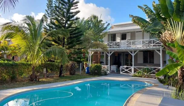 Charming villa in Blue Bay with private pool位于蓝海湾,配备带免费WiFi的花园景客房,配有户外游泳池、花园和露台。内部提供私人停车位。 这家空调4卧室别墅配有休息区、电视、DVD播放机以及带冰箱的厨房。这家别墅配备毛巾和床上用品。 这家别墅距离蓝湾海滩有4分钟步行路程,距离马埃堡汽车站有5.7公里。西沃萨古尔·拉姆古兰爵士机场距离住宿有2公里。