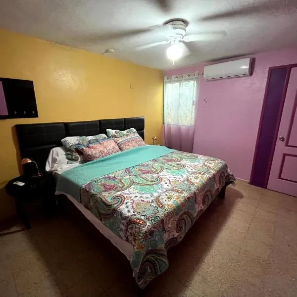 Alojamiento cómodo en Cancún位于坎昆中心,距离坎昆政府宫有不到3.3公里,距离坎昆汽车站有3.8公里,提供免费WiFi。这家度假屋距离Anahuac University Cancun有12公里,距离坎昆会议中心有12公里。 这家度假屋配有1间卧室、带冰箱和微波炉的小厨房以及1间带浴缸或淋浴设施和免费洗浴用品的浴室。这家空调度假屋还提供平板电视以及1间带吹风机的浴室。