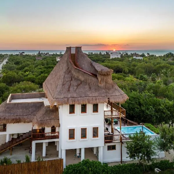 Breathtaking Ocean Vista Penthouse in Holbox at Yumbalam享有市景,提供户外游泳池和阳台,距离洪伯克斯海滩(Playa Holbox)约有5分钟步行路程。这家海滨住宿的客人可以使用露台、免费私人停车位和免费WiFi。 这家空调度假屋配有2间卧室、起居室、带冰箱和咖啡机的设施齐全的厨房以及2间带淋浴设施和吹风机的浴室。