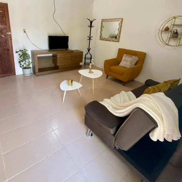 Family Apartment in Beautiful Residential Complex in Holbox为一家自助式住宿,位于奥尔沃克斯岛,靠近洪伯克斯海滩(Playa Holbox)。这家度假屋享有花园景,配备游泳池和花园,也提供免费WiFi。 这家度假屋配备2间卧室、2间浴室、床上用品、毛巾、电视、设施齐全的小厨房以及池景阳台。2间浴室提供淋浴设施和免费洗浴用品。