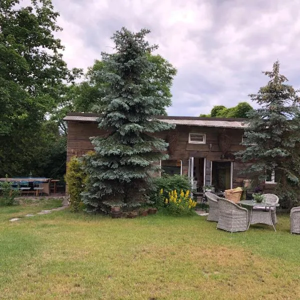 Domek całoroczny blisko lasu i morza na urokliwej działce 4300 m2享有花园景,配备花园、共用休息室和露台,距离索别斯泽沃海滩(Sobieszewo Beach)约有1.8公里。这家度假屋提供免费私人停车位和共用厨房。 这家度假屋配有2间卧室、起居室、带冰箱和咖啡机的设施齐全的小厨房以及1间带淋浴设施和吹风机的浴室。