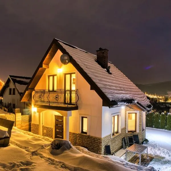 Chatynki w Krynicy Zdrój坐落于小波兰省的克雷尼察,距离尼凯福博物馆有不到3.2公里,配备免费WiFi、烧烤设施、花园和免费私人停车位。 每间房间都提供露台、带冰箱的设施齐全的小厨房、带沙发床休息区、平板电视以及带淋浴设施和免费洗浴用品的私人浴室。住宿还配备洗碗机、微波炉、炉灶和咖啡机。 客人可以在附近体验滑雪和骑行。