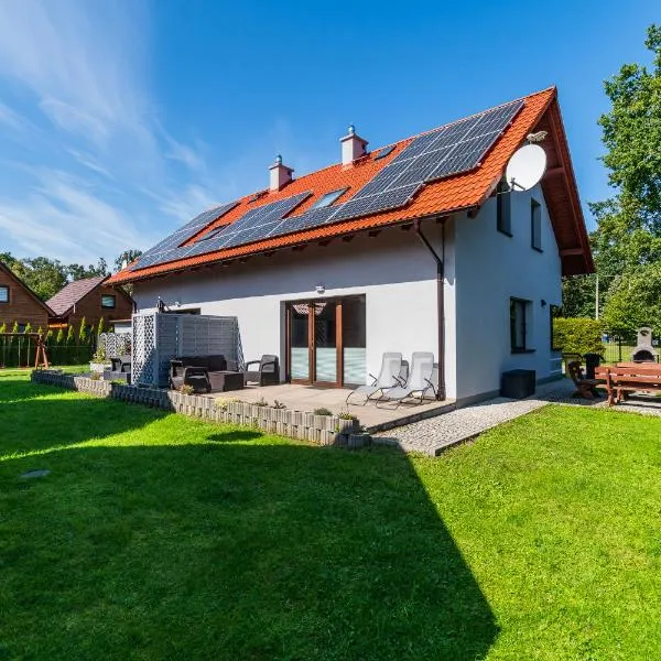 Domek Letniskowy na Wyłączność - Łaszka享有花园景,提供花园、露台和烧烤设施,距离埃尔布隆格运河约有40公里。这家住宿的客人可以使用乒乓球桌和免费私人停车位。 这家空调度假屋配有3间卧室、起居室、带冰箱和电热水壶的设施齐全的厨房以及1间带浴缸或淋浴设施的浴室。这家度假屋也提供休息区和1间浴室。 这家度假屋距离德鲁湖有46公里。