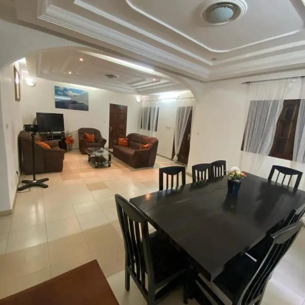 Gloryphil House位于洛美,配备带阳台和免费WiFi的自助式住宿。这家自助式度假屋配有花园和免费私人停车位。 这家度假屋配备3间卧室、1间浴室、床上用品、毛巾、带有线频道的平板电视、用餐区、设施齐全的厨房以及花园景露台。这家空调度假屋还提供洗衣机以及1间带淋浴设施的浴室。 洛美-托科安机场距离住宿有14公里。