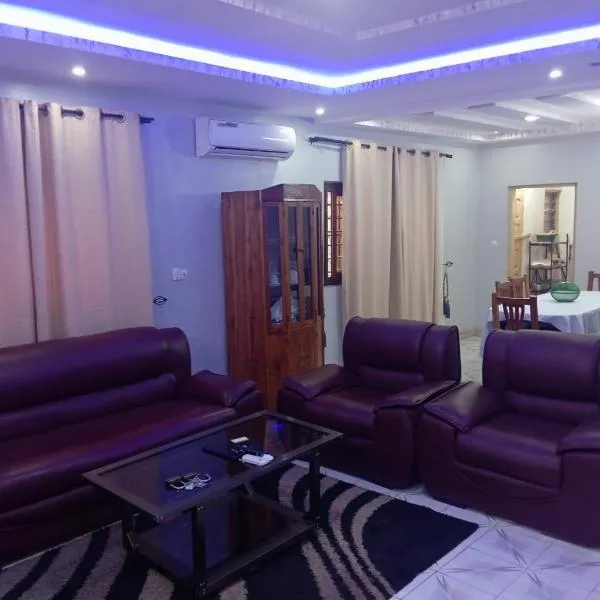 Hébergement Lomé Awatamé réservation 24 Heures avant位于Djaka。这家住宿的客人可以使用露台、免费私人停车位和免费WiFi。 这家别墅配有3间卧室、平板电视、带冰箱和烤箱的设施齐全的厨房、洗衣机以及3间带淋浴设施的浴室。这家别墅也为客人提供3间浴室。 洛美-托科安机场距离住宿有11公里。