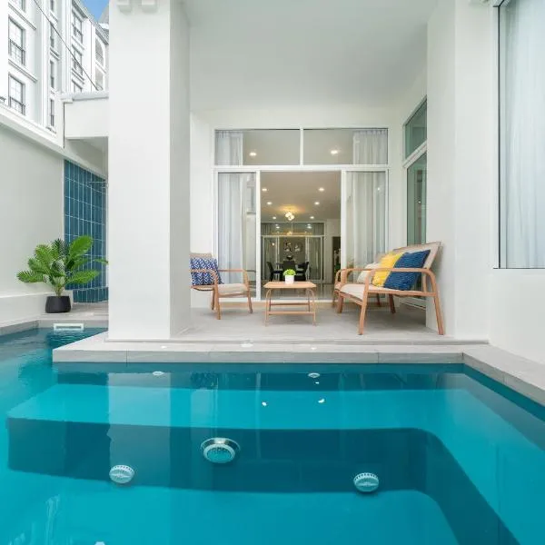 Goldena Twin Project - 3 Bedrooms Pool Villa位于卡马拉海滩,提供带免费WiFi的池景客房,配备户外游泳池和露台。这家住宿享有花园景,配备阳台。 这家空调别墅配有3间卧室、起居室、带冰箱和咖啡机的设施齐全的厨房以及3间带淋浴设施和免费洗浴用品的浴室。3间浴室配有浴缸,也提供吹风机,提供毛巾和床上用品。