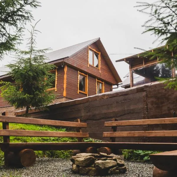 У Ґазди位于Transcarpathia的塞尼维斯卡波利亚纳,拥有阳台,享有花园景。这家度假屋提供免费私人停车位、24小时前台和免费WiFi。 这家度假屋提供露台,享有山景,配有2间卧室、起居室、平板电视、带冰箱和微波炉的设施齐全的厨房以及1间带淋浴设施的浴室。1间浴室提供吹风机。 这家度假屋提供花园和儿童游乐场。