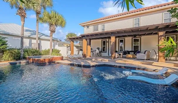 Palmetto Palms位于德斯坦,距离美丽华海滩(Miramar Beach)有2分钟步行路程,距离德斯坦港木栈道有12公里,提供餐厅和空调。入住这家度假屋的客人可以使用露台。 这家度假屋配有4间卧室、带冰箱和洗碗机的厨房以及3间带浴缸、免费洗浴用品和洗衣机的浴室。这家度假屋也为客人提供休息区和3间浴室。 住宿内部配备室外泳池。客人可以在这家度假屋附近体验骑行。