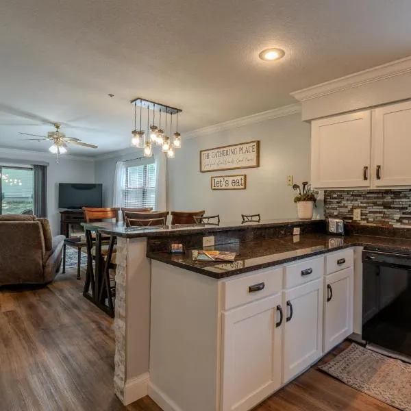 Ole Hickory w/Firepit HotTub坐落于Ridgedale,距离Table Rock州立公园有15公里。客人可以使用室外泳池、免费WiFi和24小时前台。入住这家度假屋的客人可以使用庭院。 这家空调度假屋配有2间独立卧室、2间浴室和休息区。这家度假屋配备山景阳台,也配有卫星频道电视、2间带淋浴设施和吹风机的浴室以及带冰箱、洗碗机和烤箱的设施齐全的厨房。