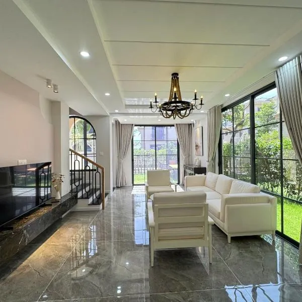 JM Villas Tropical Khem Beach提供户外游泳池、花园以及带阳台和免费WiFi的空调住宿,距离卡姆海滩(Khem Beach)有不到一公里。内部提供私人停车位。 每间房间都配备露台、带烤箱的设施齐全的厨房、带沙发床休息区、平板电视、洗衣机以及带坐浴盆和免费洗浴用品的私人浴室。每间房间都提供市景庭院。 客人可以在附近体验骑行。 这家别墅距离宋红塔有24公里,距离Corona...