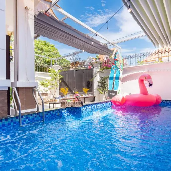 Biệt thự hồ bơi 6pn Nguyễn Hiền - Đi bộ ra biển Bãi Sau - Vũng Tàu坐落于头顿,距离后滩(Back Beach)有2.3公里,距离头顿耶稣像有1.6公里,配备免费WiFi以及带室外泳池的花园。客人可以使用桑拿浴室和热水浴池。内部提供私人停车位。 这家别墅提供亚洲风味或素食早餐。